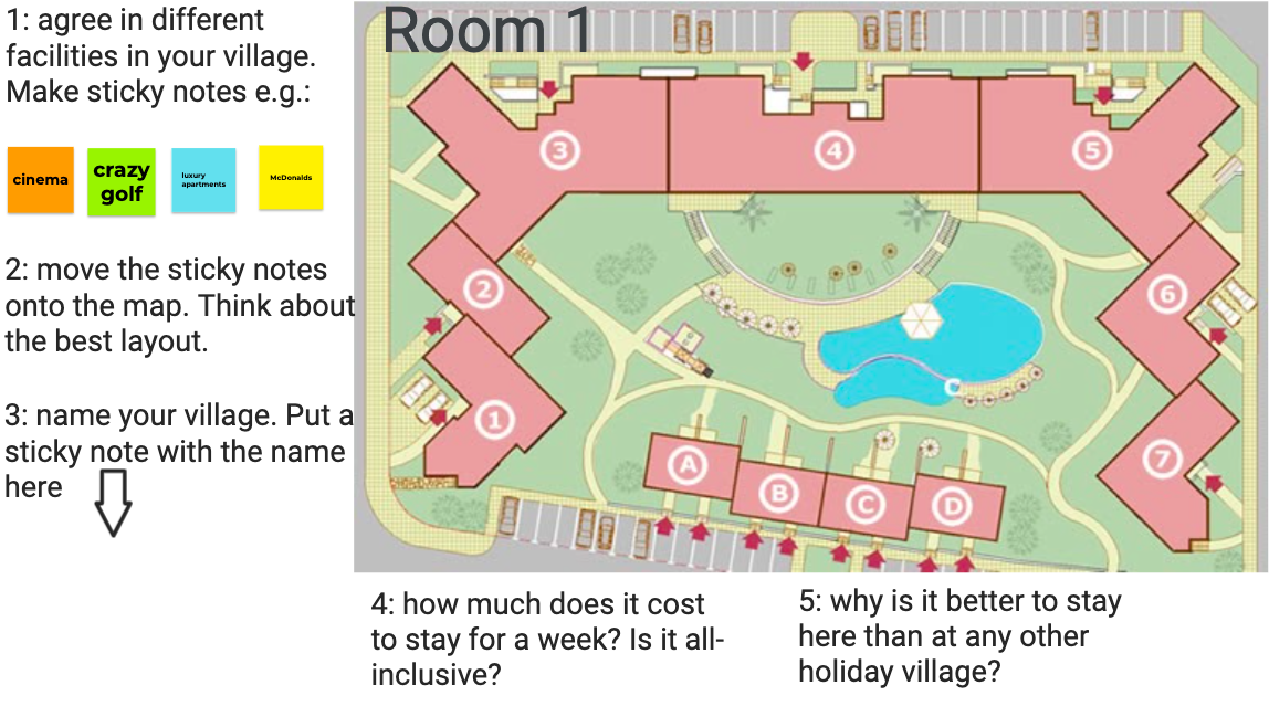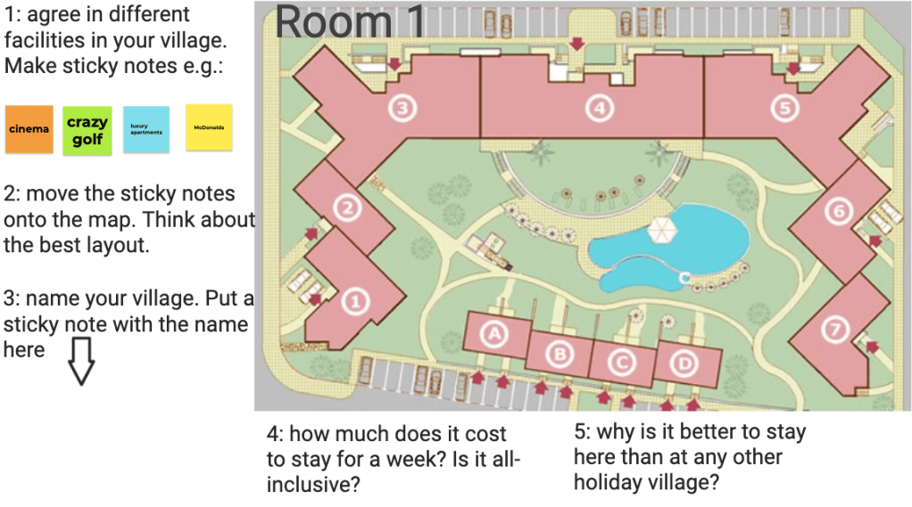 • What about Holiday Village? Well, it’s very similar – see below. I’ve added extra prompts to indicate how you might make the task more challenging: